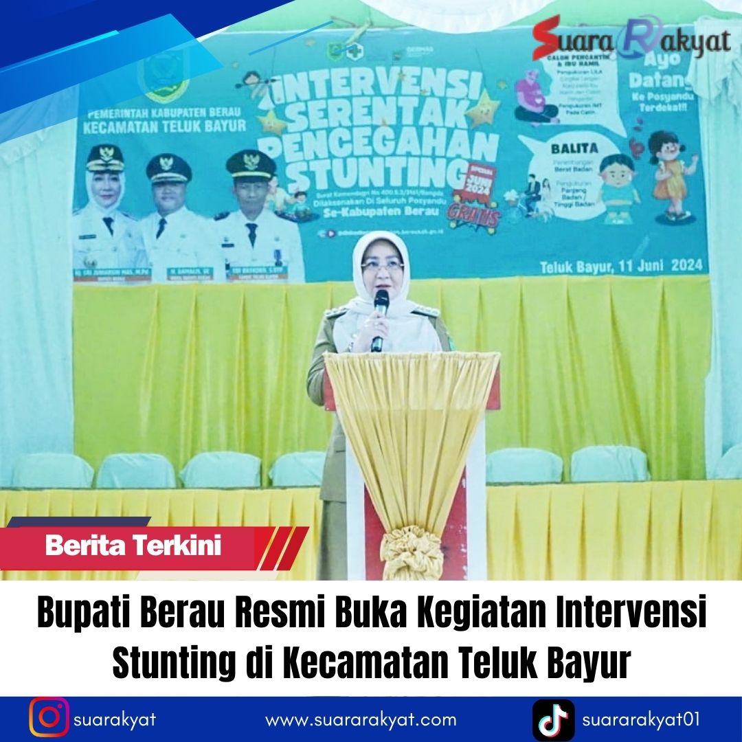 TANJUNG REDEB, Suara Rakyat Berau – Bupati Berau, Sri Juniarsih, mengambil langkah berani dalam menangani masalah stunting dengan resmi membuka kegiatan intervensi stunting di Kecamatan Teluk Bayur pada hari Selasa, (11/6/2024).